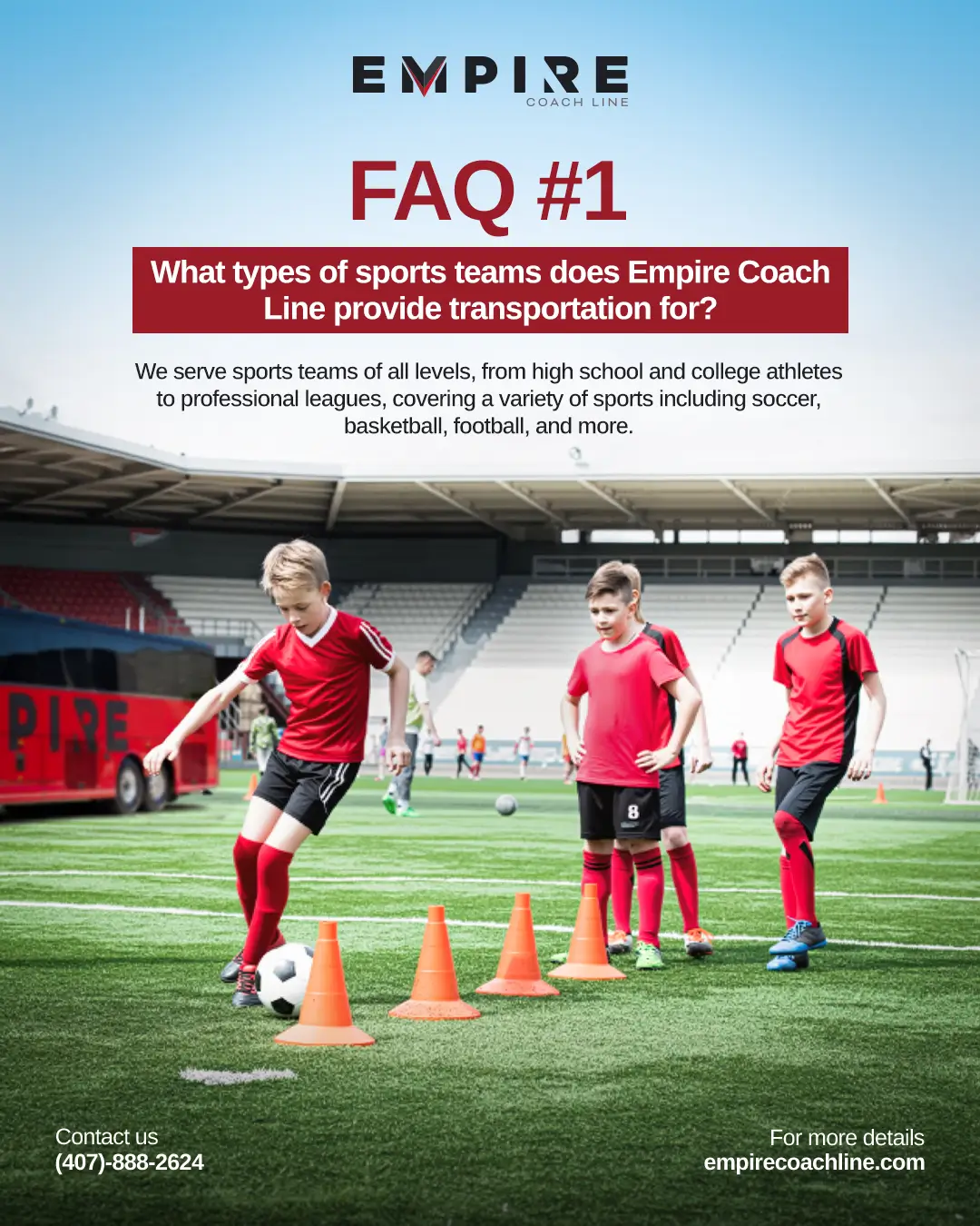 Whether you’re heading to the ESPN Wide World of Sports Complex, Camping World Stadium, or a local high school field, we’ll get your team there on time and in comfort – so you can focus on winning, not navigating traffic.